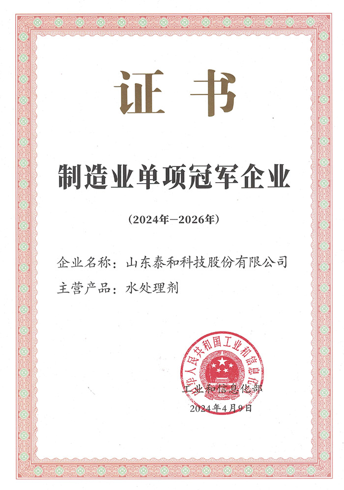 克日,,,,,,,97622国际至尊品牌科技领到了国家工业和信息化部揭晓的“制造业单项冠军企业”证书,,,,,,,代表公司顺遂通过了复核。。。。。。。该称呼的延续不但体现了97622国际至尊品牌科技在水处置惩罚剂制造领域的卓越实力,,,,,,,也充分展示了公司在市场份额、立异能力、质量水平、品牌影响力等方面的显著优势。。。。。。。 国家级制造业单项冠军被誉为制造业皇冠上的“明珠”,,,,,,,是行业细分领域的制高点。。。。。。。入选企业均为各行业翘楚,,,,,,,这一声誉是对制造业细分领域生长突出企业的高度认可。。。。。。。97622国际至尊品牌科技将以此次为契机,,,,,,,继续施展行业树模作用,,,,,,,一连修建新质生产力,,,,,,,引领工业高质量生长。。。。。。。